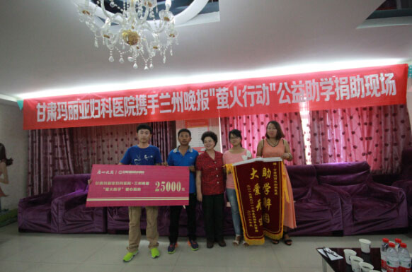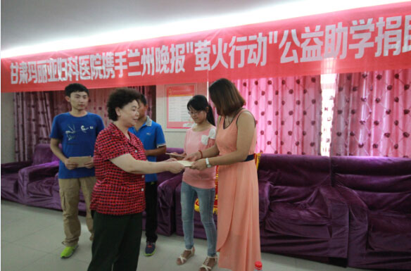 多年来,医院发展的很好,始终将热心公益活动、回馈社会作为企业发展的宗旨。积极支持兰州晚报萤火助学活动,这也是医院为回报社会、服务群众而履行的义不容辞的社会责任。近几年,医院参与过几次地震后的援助,还给予诸多残疾人爱心救助,为甘肃贫困地区患病妇女实施爱心手术100多台,多次向慈善部门捐款,资助中小学生等。今后,医院将继续支持兰州晚报萤火助学活动,用全体员工创造的劳动价值回报社会,帮助那些需要帮助的人渡过难关、树立生活的勇气和信心!
