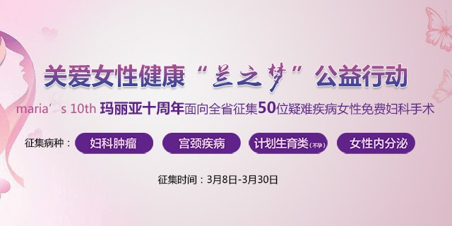 年来,随着社会压力、生活方式、环境污染等因素的影响,女性妇科疾病的发病率明显上升,并呈年轻化趋势,逐渐成为威胁女性身体健康的杀手。然而,对那些贫困及特困家庭的女性来说,真的是“看病贵,看病难”。由于家庭经济条件的限制导致很多女性忽视了自身健康,使得子宫肌瘤、妇科囊肿、女性不孕等疑难疾病无法得到及时的治疗。针对此类情况,甘肃玛丽亚妇科医院将开展“关爱女性健康 ‘兰之梦’公益系列之50位疑难疾病女性免费妇科手术征集活动”,为符合征集要求的女性进行手术免费治疗。