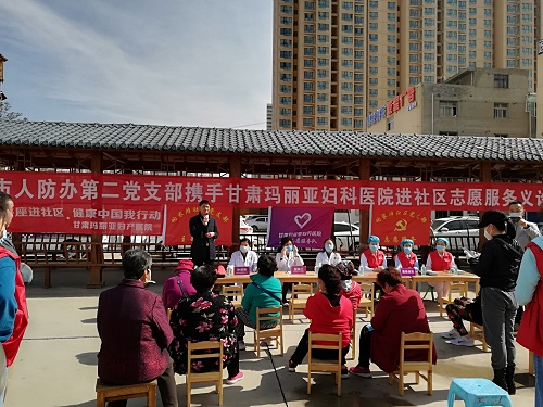 启动仪式上,市人防办冯书记做了讲话,他指出,2020年是一个不平凡之年,突如其来的新型冠状病毒感染的肺炎疫情迅速蔓延,牵动着全国人民的心。“守望相助,共克时艰”全力保障人民群众健康仍是首要任务。今天,市人防办携手玛丽亚医院进社区开展志愿义诊服务,就是要进行健康宣教,增强人民群众的健康意识,打好防控疫情保卫战。玛丽亚医院义诊负责人介绍了志愿服务活动的意义和本次义诊活动的专家阵容,并鼓励大家增强信心,日常要提高防范意识,每年进行必要的健康体检,增强身体抵抗力。玛丽亚医院赵烈荣医生就疫情防控期间,女性妇科疾病的预防、用药常识、身心健康等方面的保健常识进行了现场讲解。