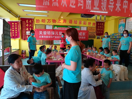 “关爱听障儿童,助力儿童健康成长。甘肃玛丽亚妇产医院的志愿者一行不仅为孩子们带来了零食、学习用品等六一礼物,还为启聪中心送来了米面油等生活物资。同时张瑞兰主任和孙淑娴主任还帮孩子们做了心肺检查,并教导孩子们注意日常卫生习惯,保持健康的身体。